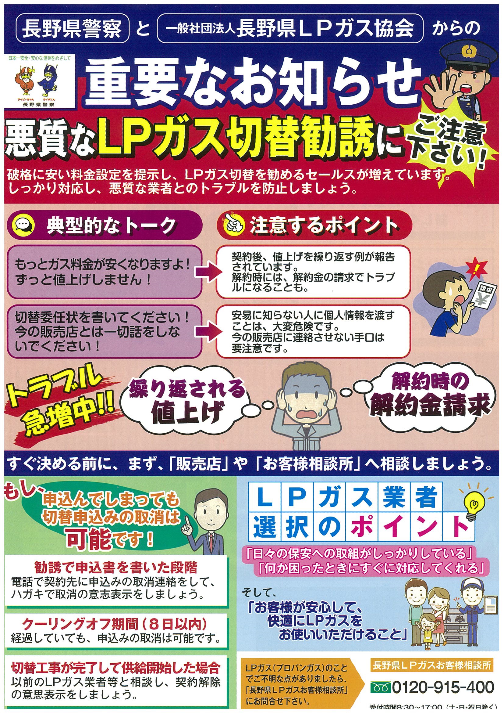 【重要】悪質なLPガス切替勧誘にご注意下さい!